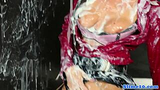 Glam Whore Drips in Messy Bukkake Scene