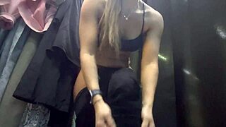milf lorena masturbates in fitting room stockings