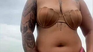 شقراء 18+ ببيكيني عملت ستريبتيز جامدة على الشاطئ