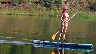 Skinny tall babe flashes pink micro bikini outdoors at beach garden