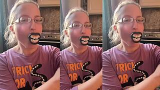 Lollipop Milf Pleasures Self on Couch with Wild Dildo Action
