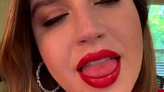 close-up fingering wet pierced goth pussy with lipstick