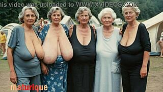 The plump vintage granny flaunts her huge saggy natural tits in retro style