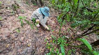 Does Thai babe suddenly pee picking mushrooms in forest?
