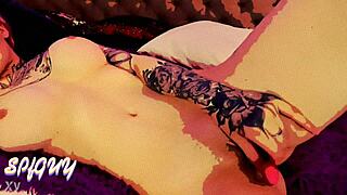 Fille voisine tatouée fait branlette huilée et montre gros nichons de près 😉