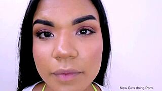 Pretty petite 18yo Latina Elizabet at porn casting fucked POV cowgirl doggystyle closeup pussy