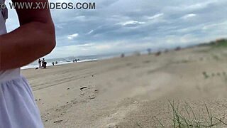 busty stranger milf strokes my monster cock to cumshot in public crowd pov
