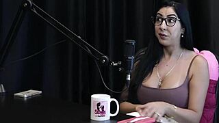 משכה זין בעל באמצע פודקאסט מצצה עמוק מנחה המום בשקוף אדום
