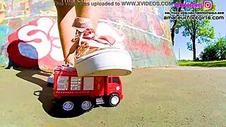 kati s giantess sneaker crushes toys in toy car trample frenzy