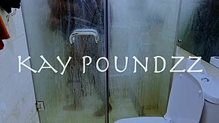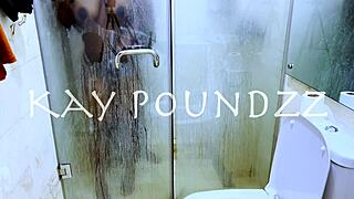 Natuurlijke ebony schat showt tieten in stoomdouche