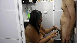 This cheating wife gets her mouth fucked hard by her black friend standing in the bathroom