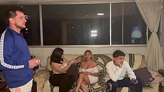 Colombian milf deepthroats monster cocks in rough group blowbang face fucking pov domination