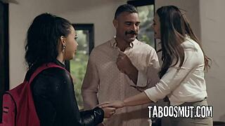 Ryan Keely schools foster stepson and stepdaughter Hannah Grace on deepthroat and interracial group sex