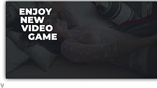 Shemale gamer flashes upskirt panties in office pantyhose try-on