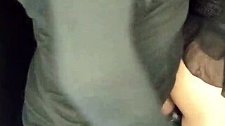 Crossdresser takes brunette from behind