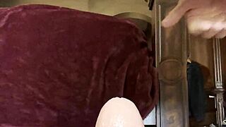 milf slut pisses hard slamming huge dildo balls-deep up her gaping ass